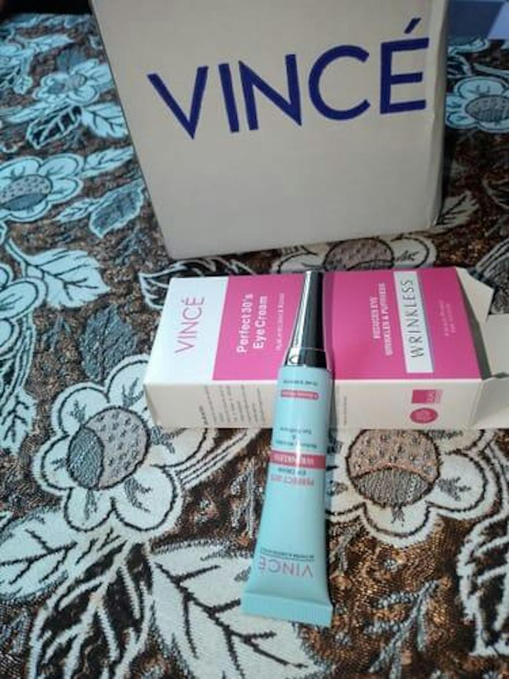Vince Perfect 30's Eye Cream rejuvenates the delicate eye area by tightening and lifting the skin around the eyes with a blend of dipeptide-2 and palmitoyl tetrapeptide-7. It helps to reduce puffiness and improves skin elasticity.